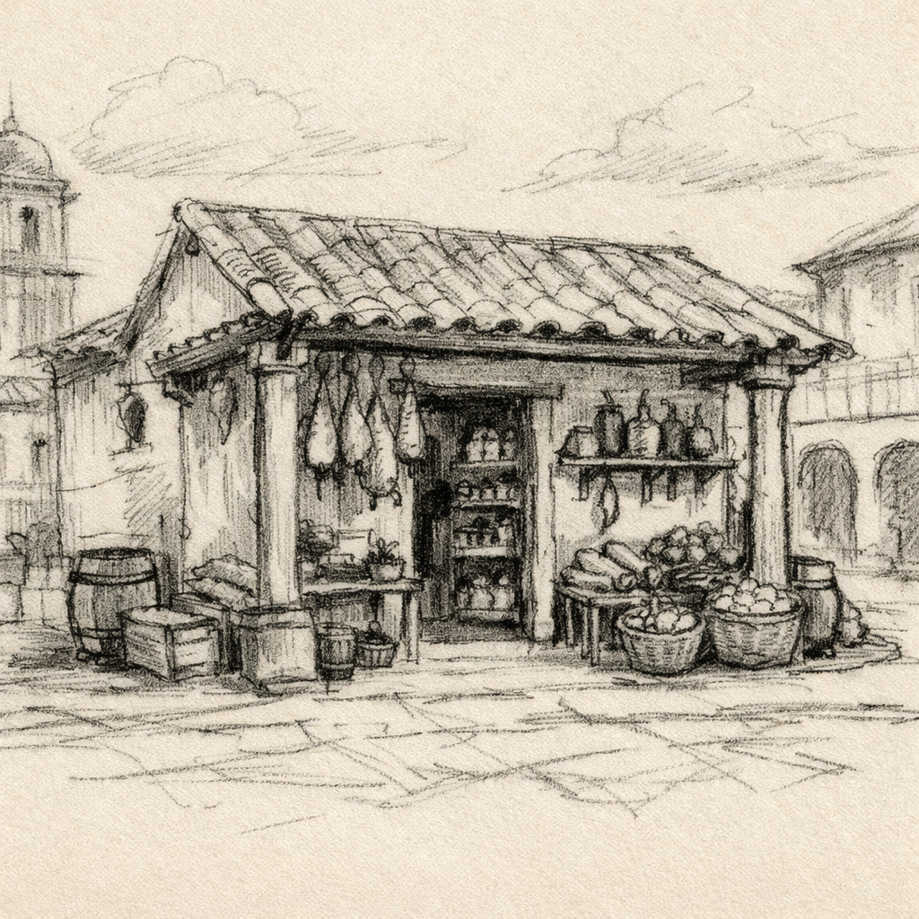 D. Tomás Ruiz Espada abre una pequeña tienda de alimentación en la plaza principal de Tarancón.